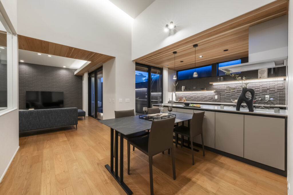 リビング・ダイニング・キッチンをゆるやかにつなげることで、家族の気配が自然と伝わる空間に。