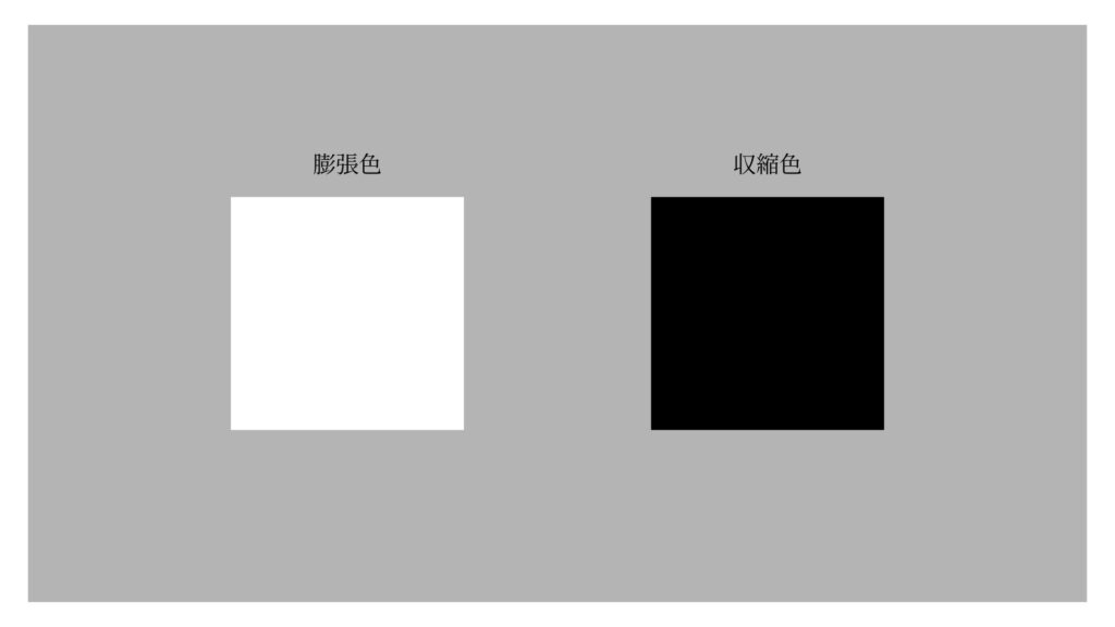 同じ大きさのものでも、他の色と比べて膨らんで見えたり、反対に引き締まって見えたりする錯覚です。